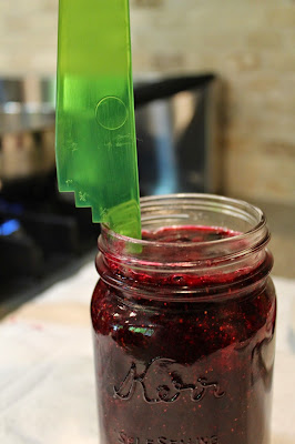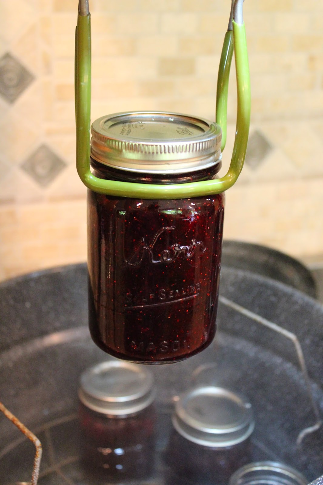 Ladle hot jam into hot jars leaving 1/2 inch headspace.