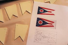 Our Ohio flag is unique in that it is the only state flag that is a swallow-tailed burgee. That meant I could not just purchase the traditional flag rectangular shape, I had to cut them out myself.